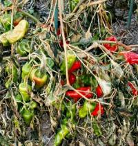 カマキリがカメムシを捕獲するのを見ましたが、今度トウガラシ類に1本に対し、カマキリを1匹というのはどうかしら?