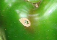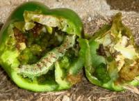 ピーマンの中を見るとこの虫が・・・タバコガ?オオタバコガ? 大きな糞でびっくり!