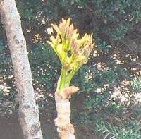 また妹の家ではタラの木を庭の中央の大きなアカマツの下に植えてあります。もう10年ぐらいは経ったでしょうか・・・太い木になっています。脇にも何本かあって天ぷらにして時々食べているようです。