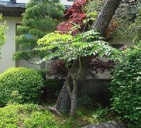 築山に松と一緒にあるタラの木。