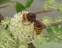 ウドの花はスズメバチの好物なのか、ヒメスズメバチが集団でやってきて、1mぐらい接近して写真を撮ろうとすると威嚇してくる。夕方だったし、これが精一杯でした。
