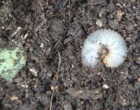 さて今度はコガネムシの幼虫。犯人はコガネムシかどうかは分からないけれど、ネキリムシはいなかったので。コガネムシの幼虫もアイスプラントが好きなのか? (>o<)ゞ マイッタ