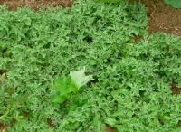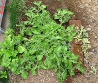 小さい種ですが、直まきで15cm間隔、2†3粒ずつ点蒔きし、あとで本葉2†3枚になったら1本に間引き、最終的には30†40cm間隔ぐらいは必要です。幅は50cmぐらいにはなりますが、どんどん摘んで利用すれば30cmでもよいかも。