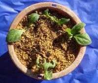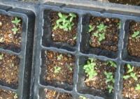 まだ寒いうちに、鉢やプランターにタネを直まきします。2†3月ごろです。(発芽適温20度前後です)
