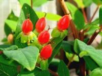 近頃よく見かけるようになりましたが、苗はこの辺のお店では見かけたことがなく縁がありませんでした。ヒペリカムにも種類があり、ややこしいのですが我家のヒペリカムはアンドロサエマム(アンドロサエムム)のようです。