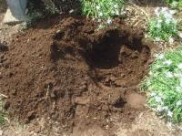 穴を掘り、腐葉土やぼかし肥料を入れました。
