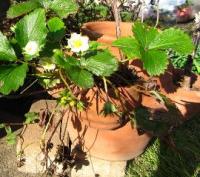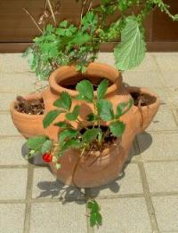 同じストローベリ†ポットでその後もイチゴを植えていますが、ワイルドストローベリー3種と古くからあった大実の四季なりイチゴです。