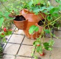 植えた翌年(2007年)のストローベリ†ポットのイチゴの実・・・このイチゴは特別甘かったですよ。