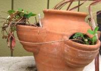 鉢を壊すか植物達を枯らすかの選択をしなくてはいけませんでした。優柔不断で決められなくて、枯れそうになるとつい水を与えていたら、ナント秋にも花が咲いて実が赤くなりました。四季なりイチゴではないのにこういうこともあるのですね。