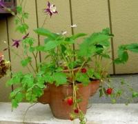 オダマキの花とミヤコワスレの花とイチゴの実 2008-5/24