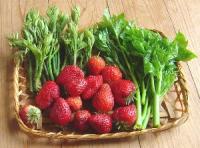 我家のイチゴの収穫 5-25 アシタバや山ウドとともに