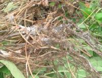 この暑さで根元まで乾燥してしまったみたい・・・と思っていたらやはり白絹病でした。