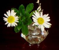 ハマギクを小さなガラスの器に飾ってテーブルに置いてみました。