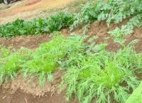 ※私の場合は、ぼかし肥料をタネまき時に元肥として与え、生育中(10cmくらい)の追肥は化成肥料をうね間に施し、軽く中耕します。