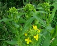 春暖かくなったら、つぼみが出てきて花が咲きました。専門家ではないのでよくわかりませんが、畑の交雑したものと庭のこの花の違いはないと思います。見かけはコマツナに近い葉と花です。葉の段階での味の違いを比べてみればよかったのでしょうが、食べないでそのままにしてしまいました。