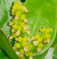 病害虫防除 病虫害は、いままでは殆どなかったのですが、 昨年は隣りに植えてあるボケ(木瓜)の木からミノムシが大発生して、センリョウ(千両)に移ってきて危うく被害に遭うところでした。