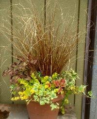 ブキャナリー(イネ科)、モミジバゼラニウム、アイビー、ペリシカル・シルバードラゴン