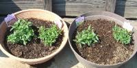 径30cmの丸鉢プランターなら3株ぐらいを目安に植えつけます。私は鉢に2株植えました。