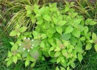 畑のヤマアジサイの紅(クレナイ)は日陰にあるため赤く色づかない 6-17
