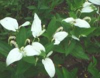 花のすぐ下の葉の表面が白く変化し、目立つので葉が花弁のような役目を果たしています。