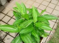2008年7月1日現在の鉢のハンゲショウは穂が出たばかりでまだ葉が白くなっていません。