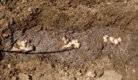 大きい種(塊茎)は手で分割して1つ50†70g程度にし、小さければ2つまとめにして芽を上に向けて7†8cm間隔に植えます。畝間は60cmにします。覆土は6†7cmとします。