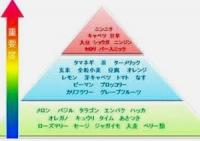 1990年からアメリカ国立ガン研究所が中心となってガンになる要因は食生活によることが大きいので、天然の植物性食品でガン抑制作用のある成分を主体にガンの発生を未然に防ぐことが出来るのかを調べ、ガン予防効果の高い食品40種類をピックアップし、効果の高い順にピラミッドに表したものです。