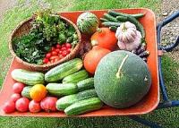 ナス、キュウリ、トマト、スイカ、オクラ、モロヘイヤ、ハグラウリ、伝統野菜のカボチャ「鹿々谷かぼちゃ」「加賀野菜 打木 赤皮甘栗南瓜」など