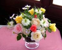 小さなバラの花にミヤコワスレ(都忘れ)とニゲラを添えてみました。