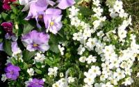 ↓パンジーとビオラ・ステラ(バコパ)・イビリス・リシマキアオーレア・アイビーなどが入っています。