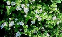 小さな葉で、地を這うように育ち、白い小さな花が咲きます。