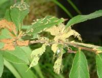 ※その後、2011†2013年の3年間は害虫は発生していません。カマキリが毎年枝にいるので、虫を食べてくれているのでしょうか?