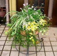 「オウゴンニシキ」 を葉もの中心の寄せ植えにしました 2007-7-31