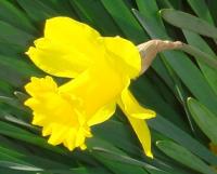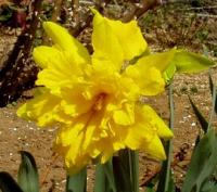 ↓古くからあるラッパ咲きスイセン。庭や畑のいたるどころに生えています。
