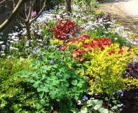 我が家のシェードガーデン(日陰の庭)です。ハナニラ(イエイオン)が沢山咲いているところとは別の少しだけ咲いているところです。