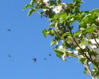 ハナミズキにもアシナガコガネが向かっていきます。5-10