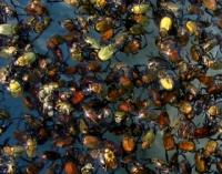 芝栽培の最初のころ(昭和40年代†50年台)はアシナガコガネがほとんどいなかったので、芝生産に防虫対策は必要ありませんでした。いつからアシナガコガネが目に止まるようになったか記憶が曖昧ですが徐々に増えてきて、つくば市が日本一の芝生産地となったあたりから(バブル時代)、毎年異常発生するようになってしまいました。芝を切り出すときに根の部分がアシナガコガネに食べられてなくなってしまい問題になりました。それからは薬を撒かないと商品として納められなくなってしまいました。