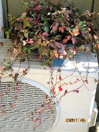 もうひとつの寄せ植えに使っていたハツユキカズラを水を入れた器にしばらく置いていたら9月頃には早くも紅葉してしまいました。株が弱るとなると紅葉するのでしょうか?