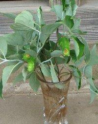 このあとテンサン(天蚕)NO1のいるホンサカキをビンに生けて軒下に持ってきました。