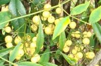 黄味を帯びた白色の果実を付けるのが白南天です。