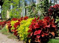 塀際に植えたこのコリウスは蕾(ツボミ)が出にくくて、庭にたくさん植えても手入れが楽でした。(栄養系コリウス)