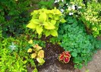 さし芽したコリウスを花壇に植えてから一ヵ月半の様子。