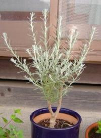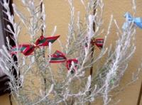 昨年(2006年)のエレモフィラ・ニベアには赤のリボンを結んでクリスマスツリーにして楽しみました。