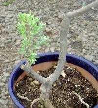 我家のエレモフィラ・ニベアは3年目なので枝が伸びすぎていて、来年は今年みたいに年中倒れても困るので花が終わってから、元のほうから新芽が出たのを確認して上はバッサリ切ってしまいました。