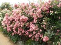 つるバラとしてフエンスに絡ませて楽しんでいるバレリーナ。刈り込んで、木バラのように楽しむこともできます。管理がうまくいくとこんなに沢山の花が咲きます。