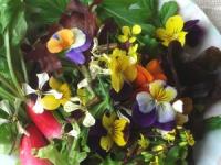 こぼれ種でも増える畑のビオラの花をエディブルフラワーとして利用しています。