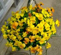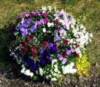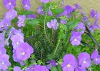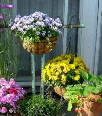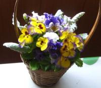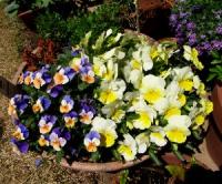 工夫次第ですばらしいパンジー・ビオラのハンギングバスケットができるでしょう。