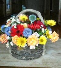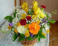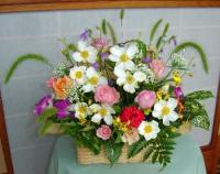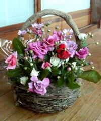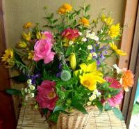 フラワーアレンジメントを習ったわけではないので、自己流でコップやら籠などに入れたりしています。