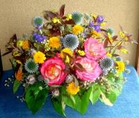 小花ばかりでパッとしませんが、秋のフラワーアレンジメントです。