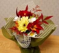 バラ、ガーベラ、姫ひまわり、ルリタマアザミ